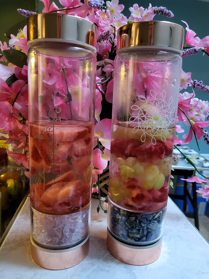 Intention Crystal Bottles are designed to magnetize desired energy and outcomes for you. Setting your intention upon your water bottle with clarity and positive intentions. Drawing energies from the external to you internally, versus the other way around.
