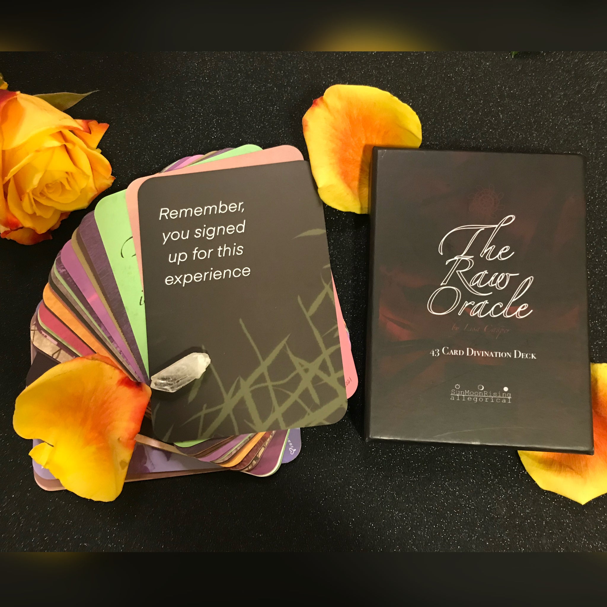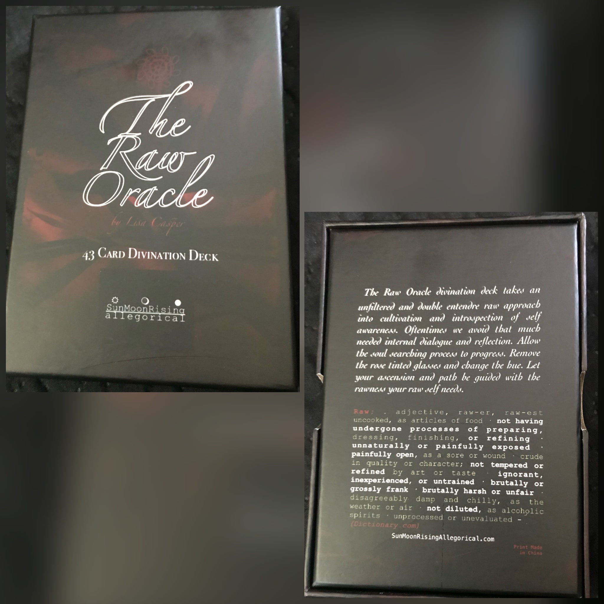 The Raw Oracle, a 43 Card Divination deck, takes an unfiltered and double entendre raw approach into cultivation and introspection of self awareness. Oftentimes, we avoid that much needed internal dialogue and reflection. Allow your soul searching process to progress. With the Raw Oracle deck, you will be able to remove the rose tinted glasses and change the hue. Let your ascension and path be guided with the rawness that your raw self needs.
